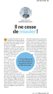 Il ne cesse de miauler! Le miaulement est l’une des vocalisations permettant au chat de communiquer, mais lorsqu’il devient incessant, cela peut devenir un problème pour les maîtres. « Lire la suite « Article paru dans le Plus magazine du mois de mars 2025 Catégorie(s): Blog, Comportementaliste félin, Plus magazine, Publications Publié le 20/09/2025 Article précédent: « Le préparer à l’arrivée d’un bébé Article suivant: Partager : Cliquez pour partager sur Facebook(ouvre dans une nouvelle fenêtre) Facebook Cliquez pour partager sur LinkedIn(ouvre dans une nouvelle fenêtre) LinkedIn Cliquer pour partager sur X(ouvre dans une nouvelle fenêtre) X Cliquez pour partager sur Pinterest(ouvre dans une nouvelle fenêtre) Pinterest Cliquez pour partager sur WhatsApp(ouvre dans une nouvelle fenêtre) WhatsApp